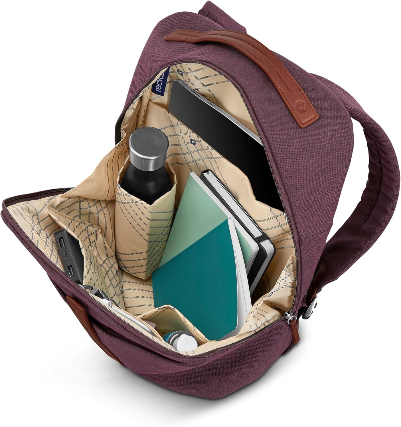 Samsonite Virtuosa Carry-On Travel Backpack with Padded Laptop Sleeve, Off White(Merlot)