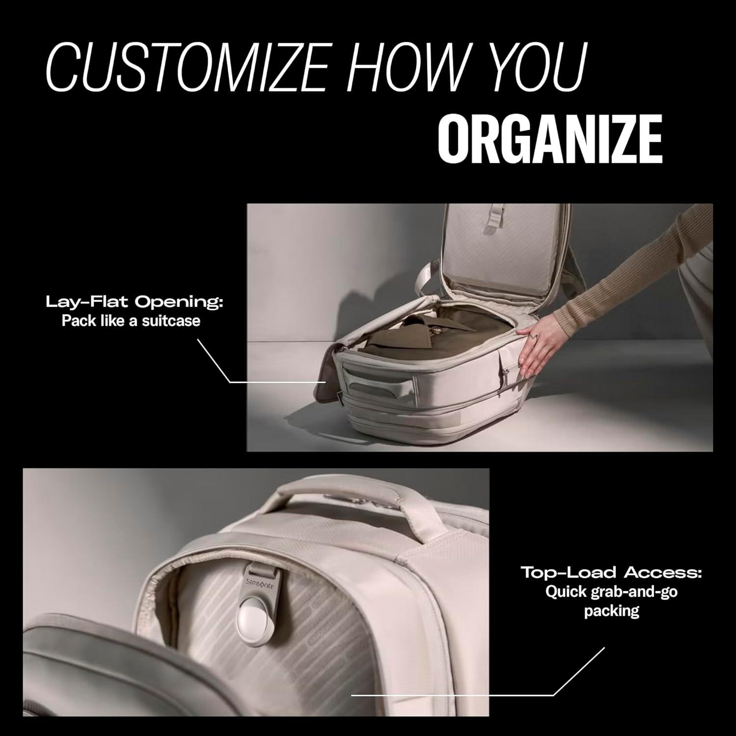 Samsonite Paralux 2-in-1 Travel Backpack, Converts into Main Bag + Go Bag, Lay-Flat Packing, StackIt™ Strap, Laptop Sleeve & Integrated AirTag™ Holder – Business & Adventure Travel Bag – Olive(Stone Grey)