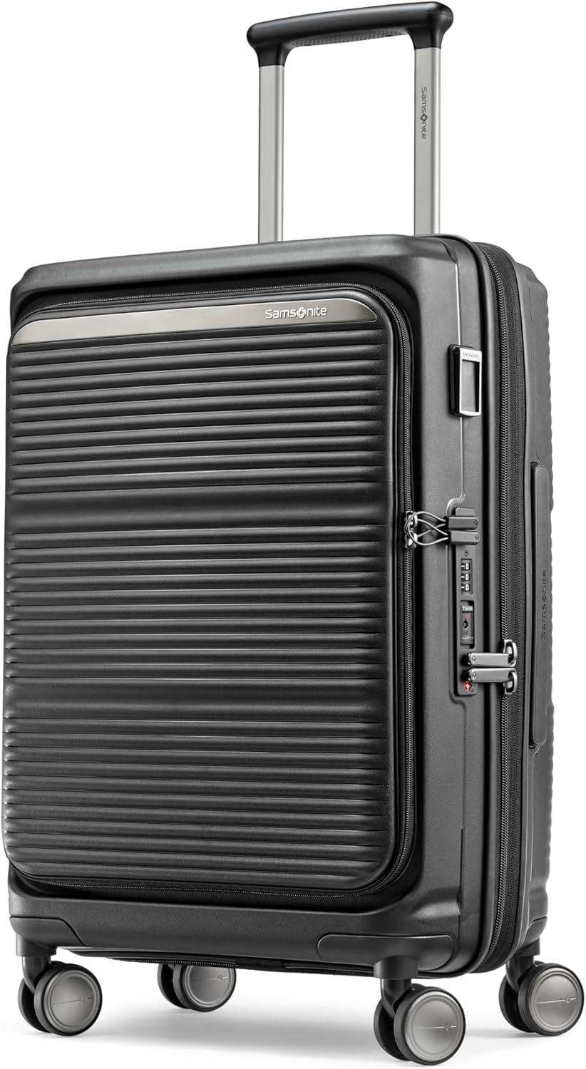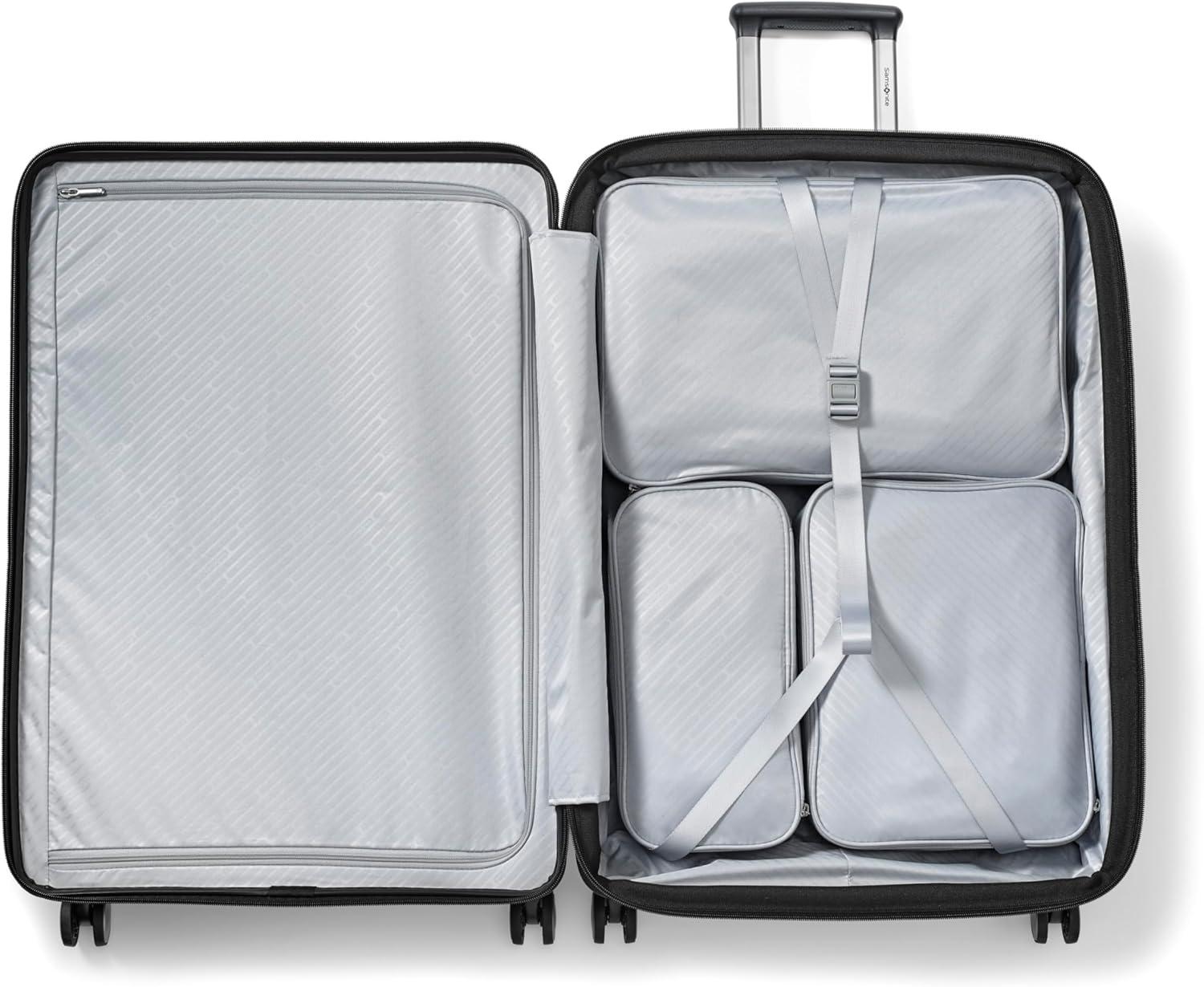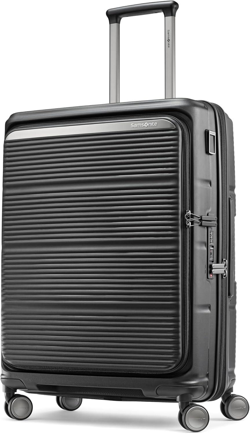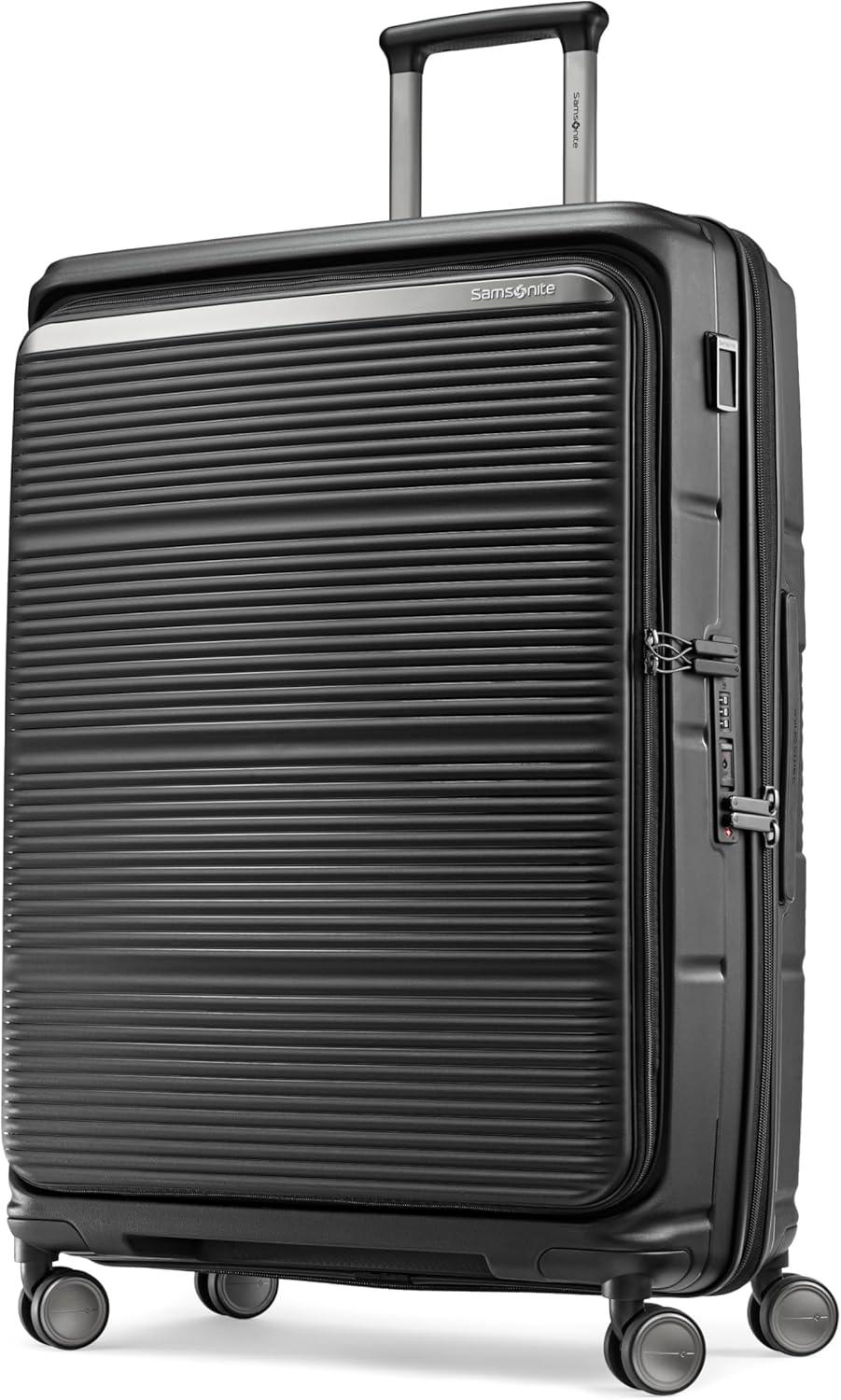 Samsonite Paralux Large Checked Luggage – Innovative Design – Quick Access Front Pocket – Dual Suspension Wheel Technology – TSA Lock – Expandable – Includes Removable Packing Cubes – Stone Grey(Black)